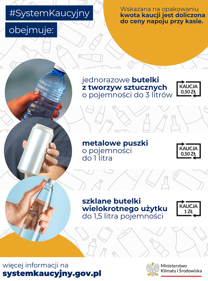 Ministerstwo Klimatu i Środowiska stworzyło także stronę www: systemkaucyjny.gov.pl, na której można znaleźć kompleksowe informacje na temat systemu oraz gotowe materiały do pobrania.